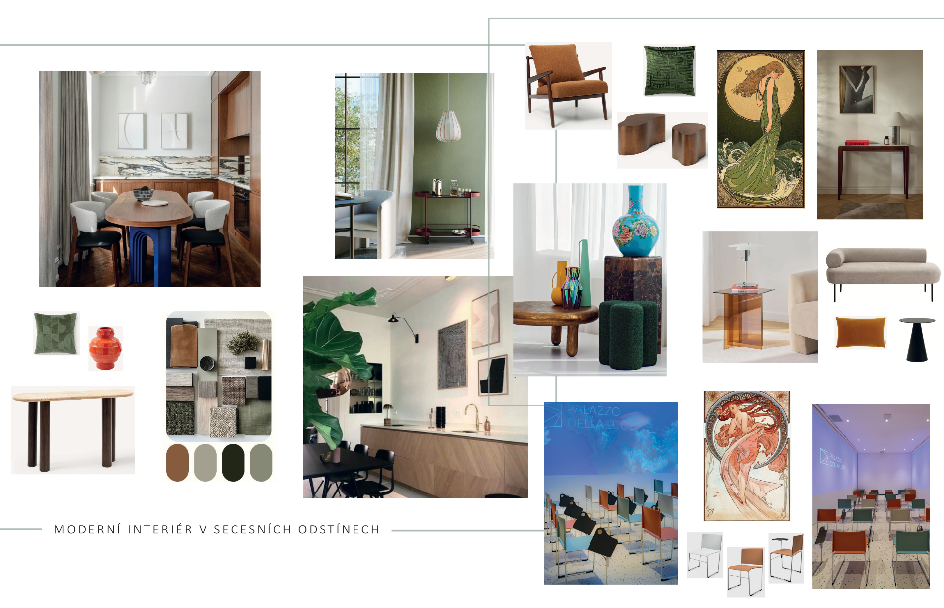 Celý koncept stojí na vyvážení praktičnosti s citlivým uchopením secesní atmosféry. Obsah interiéru vznikal od grafického návrhu přes moodboard až po detailní nákupní seznam.
